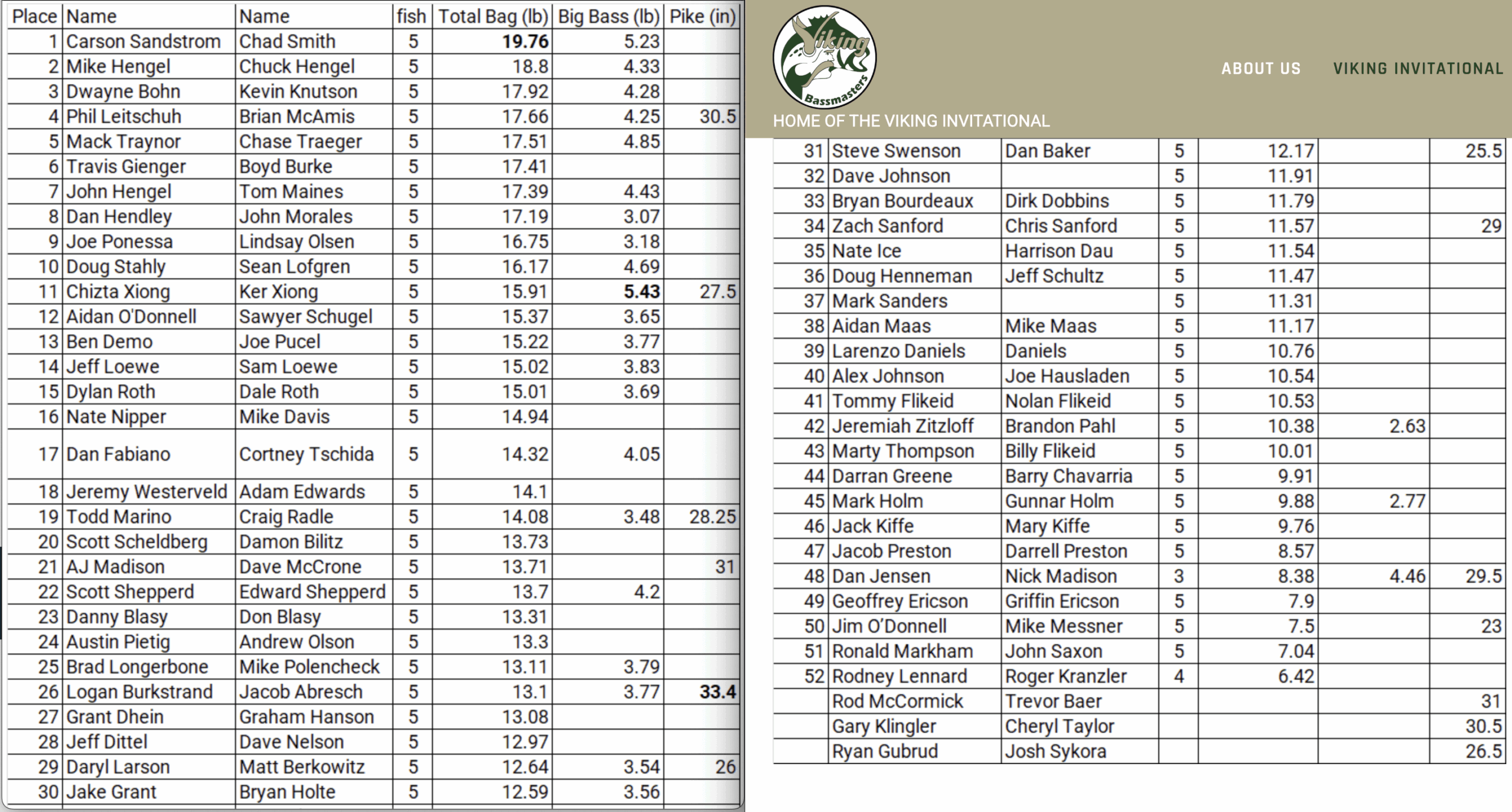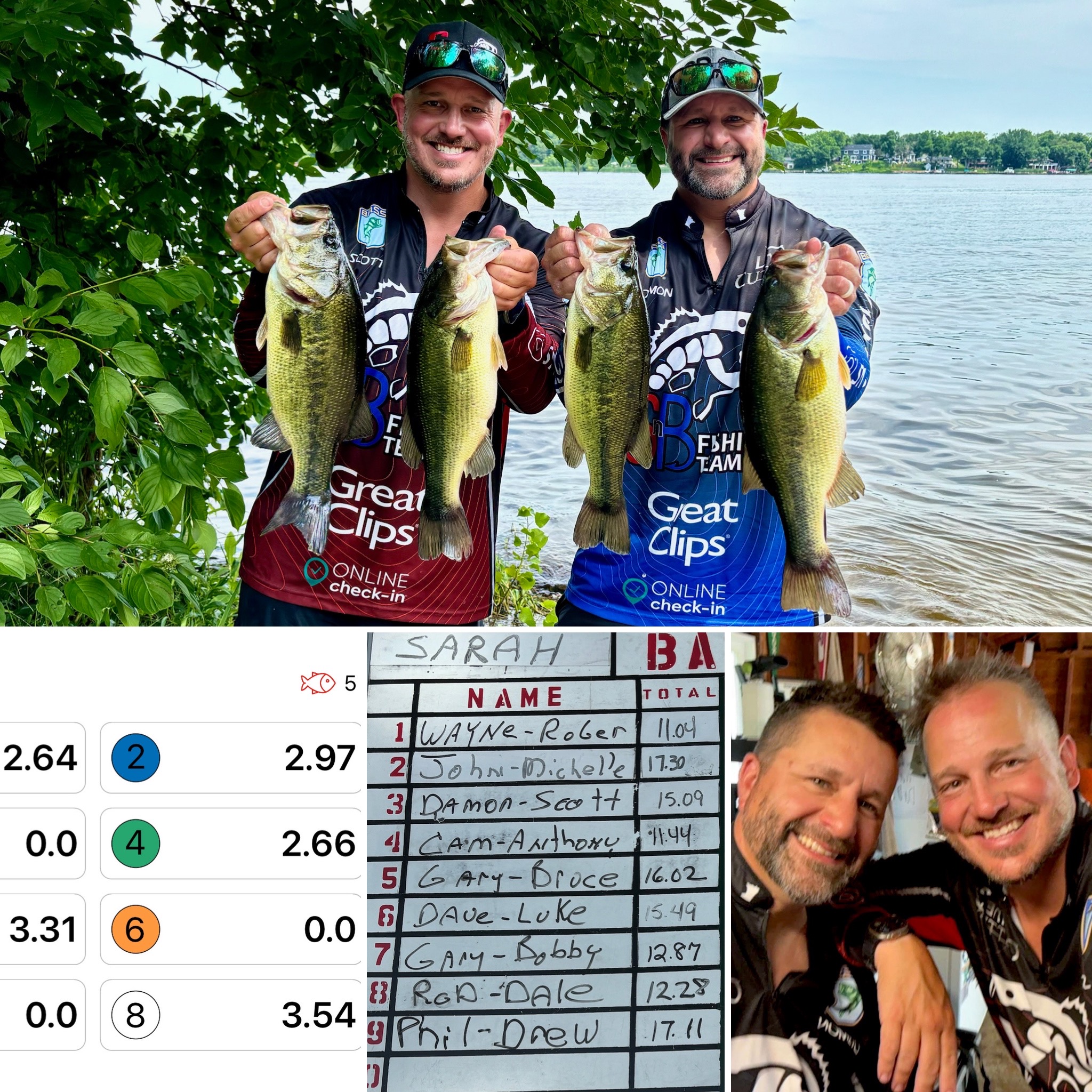 One day we’ll figure this lake out on tourney day. Only 0.61# out of the $$ (5th). Damon’s big late was crucial.